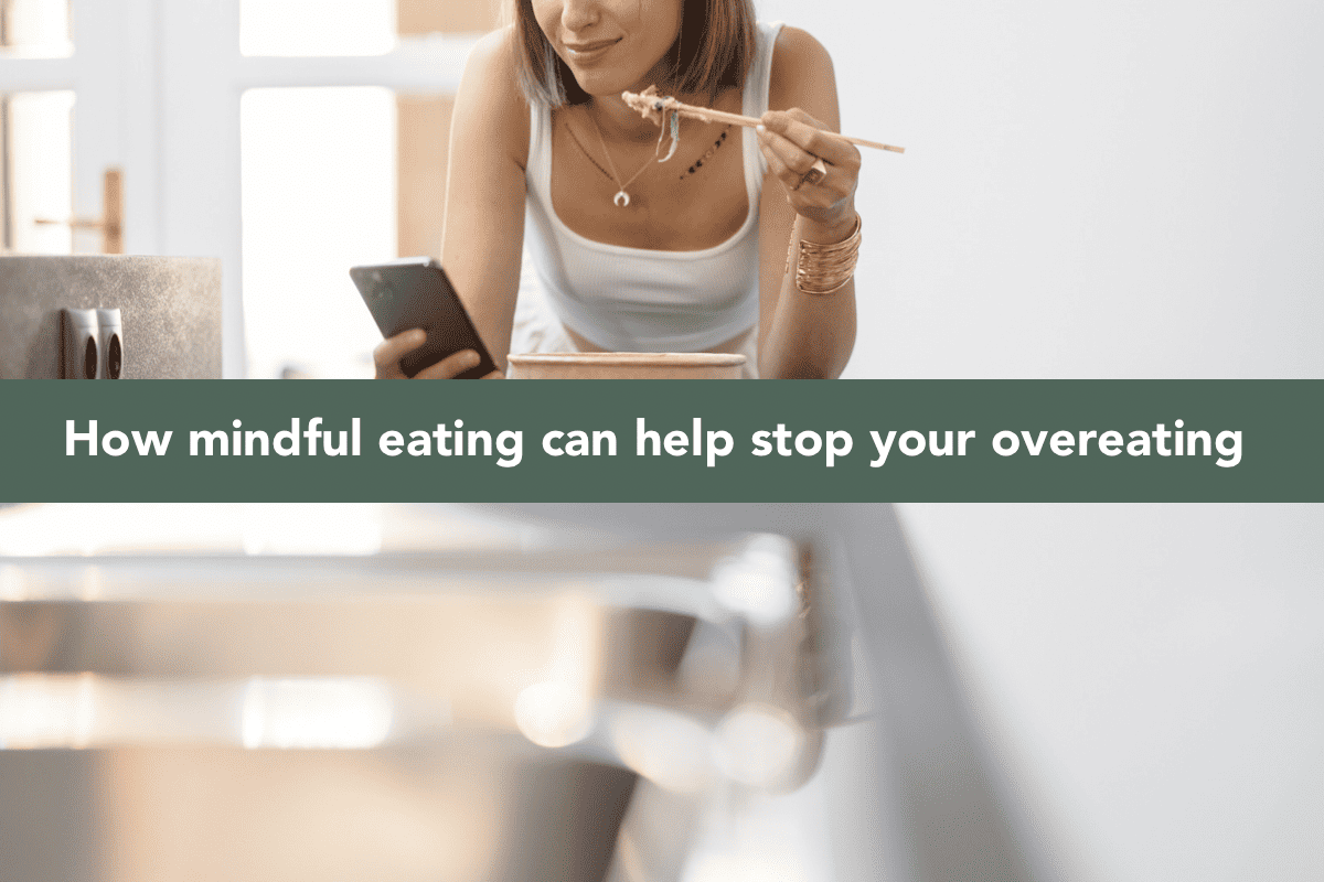 My clients (and from my own experience) often find themselves eating quickly and distracted in the first place. This can happen for a lot of reasons like a stressful day, being overly tired, being anxious or fearful of the “bad” food you’re eating or often trying to “get it over with” because you feel guilty for eating.