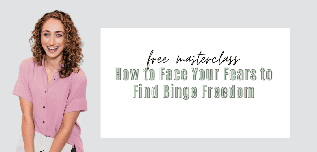 If you’re ready to heal your relationship with food and your body. you’re in the right place! Enroll in my FREE masterclass: How to Face Your Fears to Find Binge Freedom!
